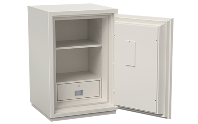 「扉のこじ開け」に対応した耐破壊性能15分(TS-15)、一般紙用2時間耐火性能、後加工なしの床固定で持ち去りを防ぐほか、ロックシステム(認証方式)も豊富なオフィスの定番金庫です。
